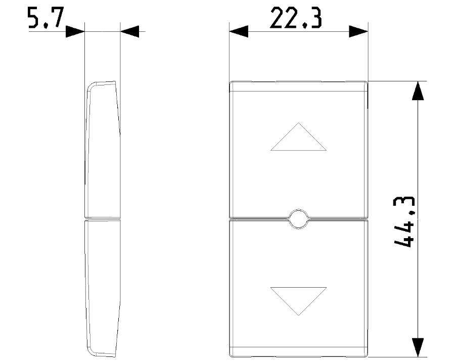 • Two interchangeable half-buttons 1 module, arrow symbol;