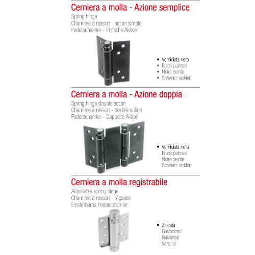 Available in single action, double action and adjustable versions , these spring hinges are ideal for both residential and commercial environments where efficient and controlled opening and closing is required.