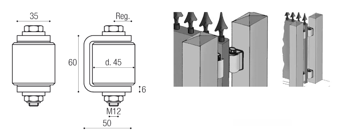 Adjustable Nylon Roller with Support for Lateral Guide for sliding gate.