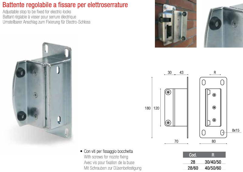 Adjustable leaf to be fixed for electric locks with screws for escutcheon fixing, Adem 28 and 28/60 model.