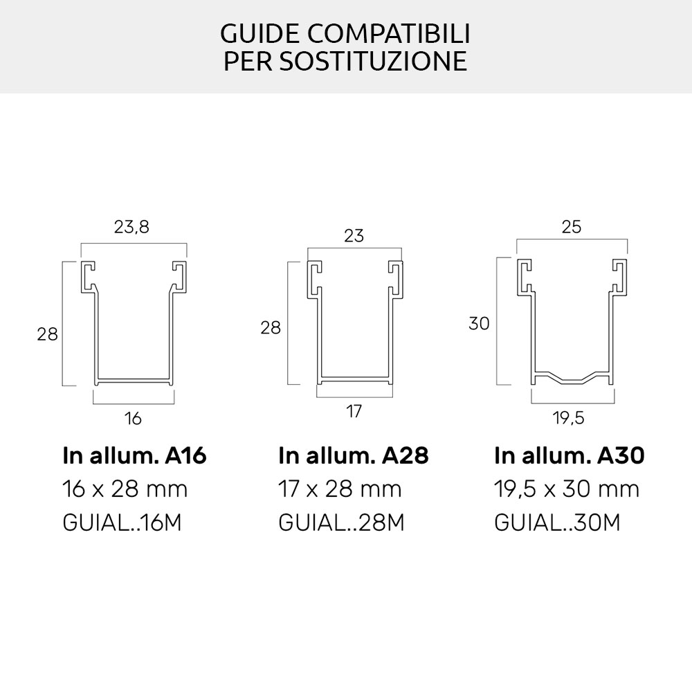 2. Replacement or new installation of roller shutters and sliding guides: for the width of the roller shutter, with reference to the guides to be used, the necessary tolerances must be taken. You can use the old guides if they are in good condition and if they have at least 16.5mm of usable space inside.