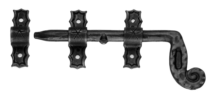 With its traditional shapes and characteristic curved handle, this wrought iron bolt is ideal for enriching wooden doors, shutters or gates, in rural, period or country contexts.