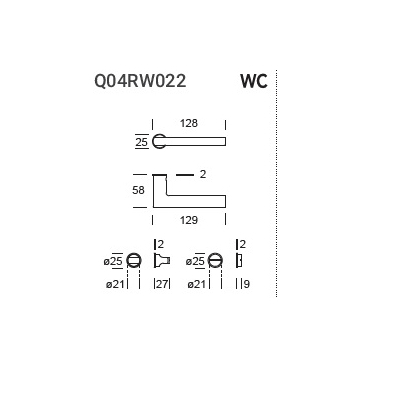 - Steel handle with minimal rosette ø25x2 mm and WC 503 pawl with 6 / 8mm square.