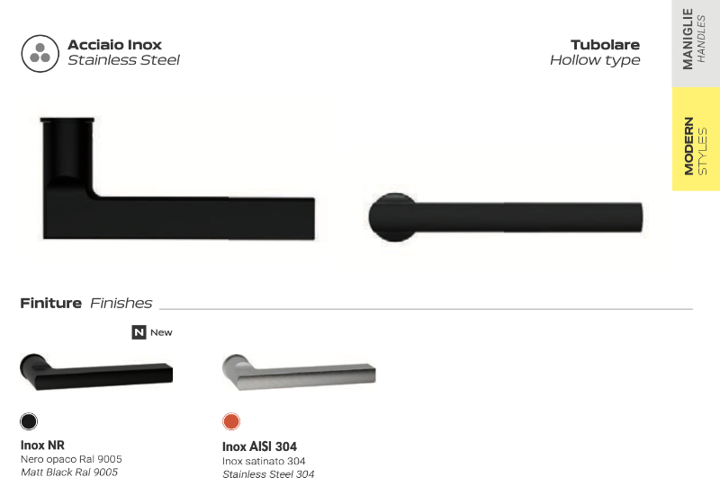 Reguitti Inox is the renewed collection of steel handles produced by the famous Italian handle manufacturer. In fact, Reguitti applies its know-how of over 40 years of activity to the world of stainless steels.