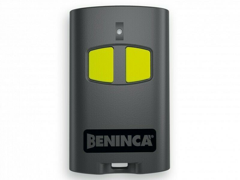 The remote control for Benincà TO.GO-VA automation gates is equipped with two yellow buttons and operates at a frequency of 433.92 MHz . The coding used is the Advanced Rolling Code (ARC), which represents an evolution of the previous Rolling Code system (HCS). This technology makes it possible to create a very long transmission code (128 bit), guaranteeing a high level of security and making the remote control unduplicatable without the owner's authorization.