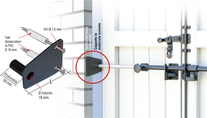 In cases where the external coat is present on the external side of the house, it is necessary to mount Blindy Sbarra with this type of plate. Otherwise the bar would go inside the insulation instead of the wall, with a consequent sealing problem.