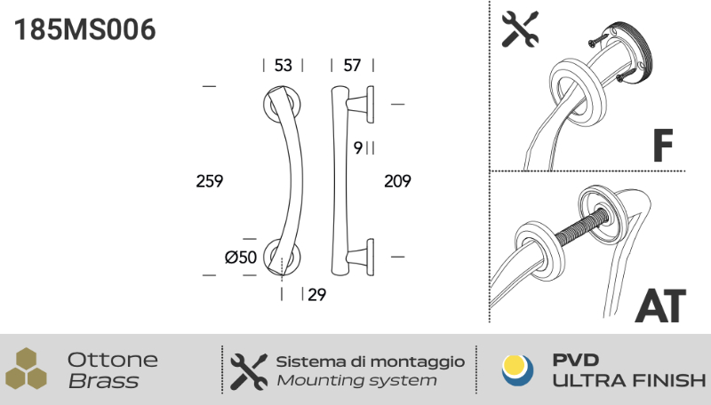 Price including 1 single (F) or coupled (AT) fixing kit . Specify the fixing kit for the handle you want in the customer notes when ordering.