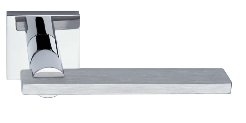 rectangular handle integrates perfectly with the square rosette, creating a balanced and harmonious design that adapts to contemporary and sophisticated interiors.