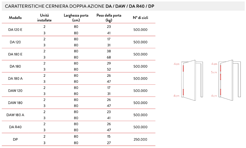 cerniera doppia azione justor da120 misure