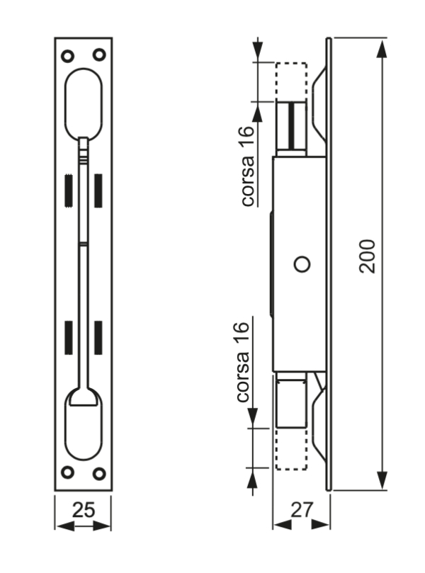 The double action recessed bolt with brass lever is an excellent choice for iron gates, thanks to its resistance and ease of use.