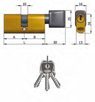 Double Cylinder Omec with Knob Brass Oval 5 Pins 70mm L 43/27