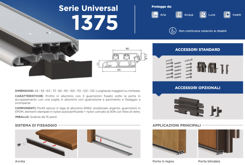 Universal articles guarantee excellent results in terms of thermal and acoustic insulation and air and water tightness, complying with the standards set by recent regulations.