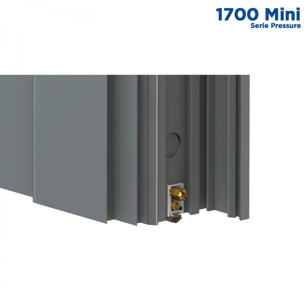 The Comaglio 1700 Mini draft excluder from the Pressure series is a built-in solution for swing doors, equipped with a patented mechanism with parallel descent of the mobile profile.
