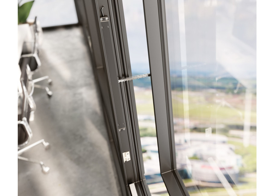 Available in the version with brackets (installation inside the profile) or with long fork (installation outside on a milled profile), E-LOCK adapts to different architectural configurations. It is also compatible with SHEV (Smoke and Heat Exhaust Ventilators) systems according to the EN 12101-2 standard.