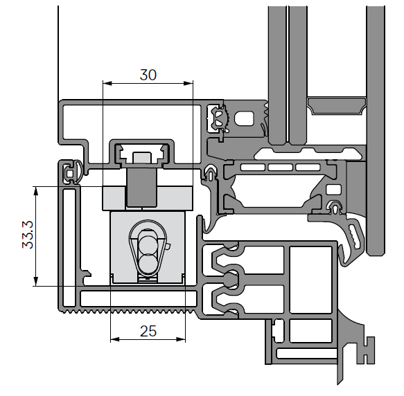 - With long fork : actuator external to the profile, with connection to the hardware via milling;