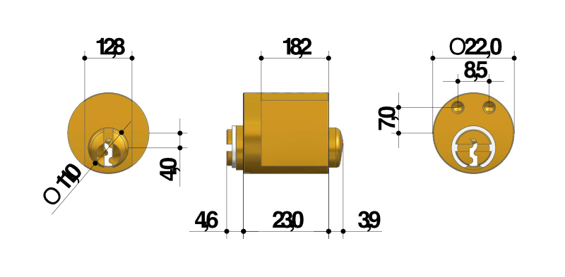 The lock with milled cylinder for extending gate is supplied with 2 keys.