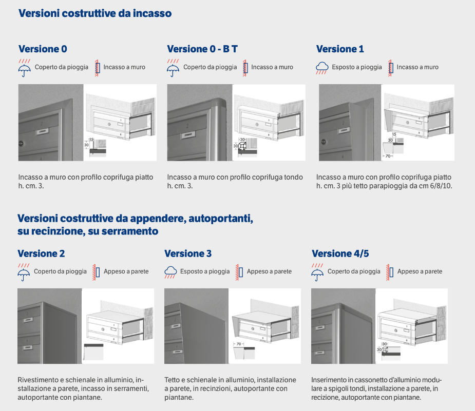 Cassette Postali da Esterni Condominiali EX - EX35 versioni costruttive