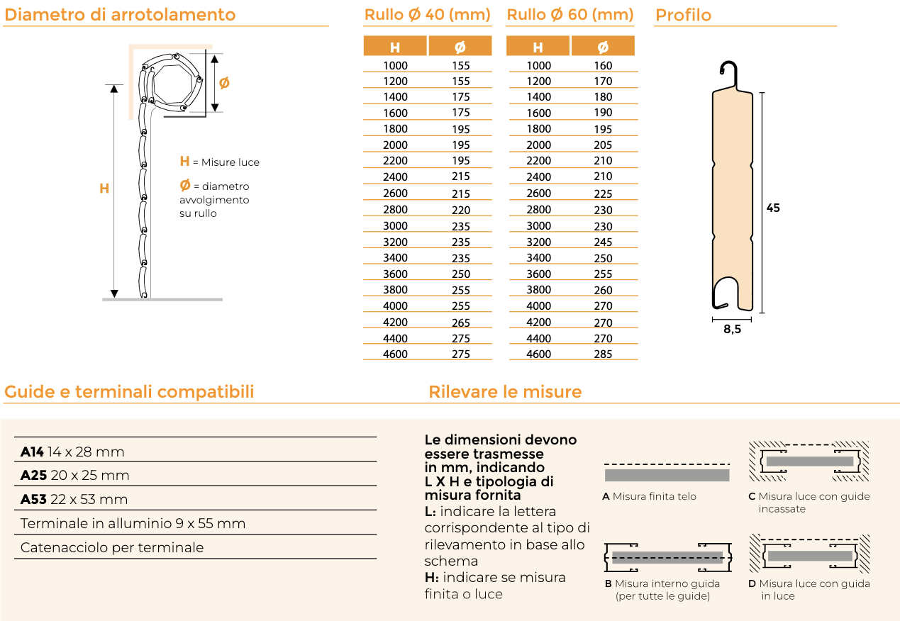 To choose the profile of the shutter (in case of replacement) measure the height of the single slat without considering the connecting hook between the slats.