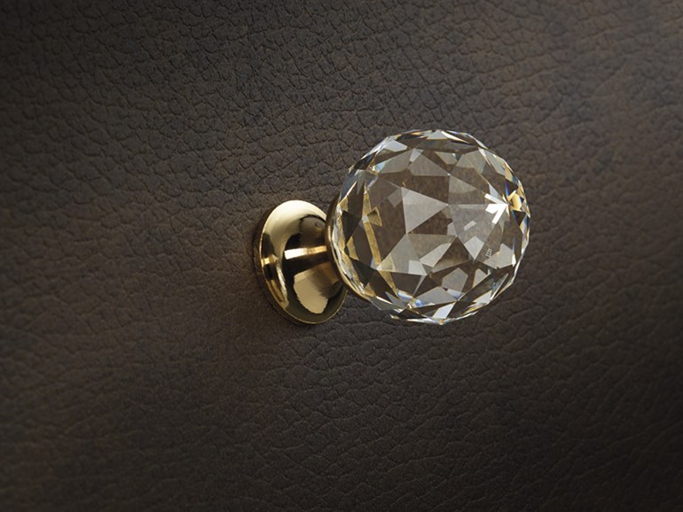 Linea Calì Crystal furniture knob in OZ Zecchino Gold finish with Swarowski® crystals.