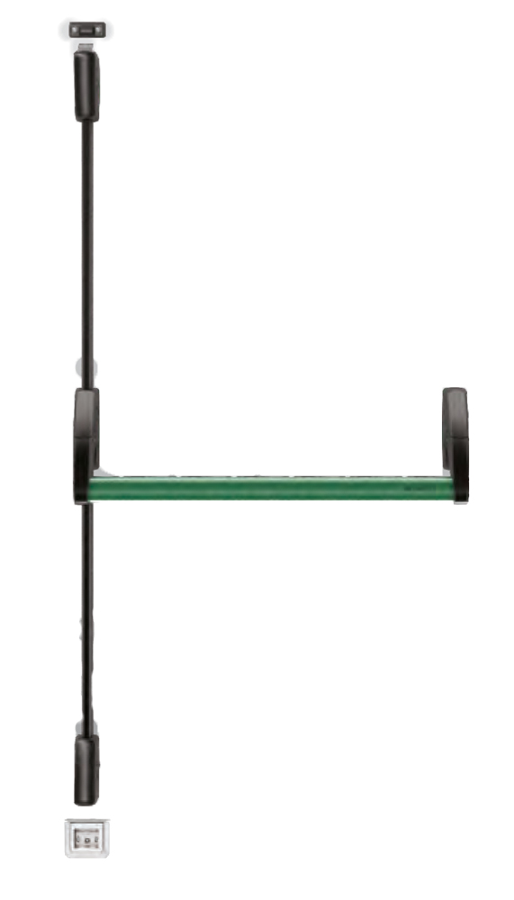 This 2-point locking panic bar ensures quick and safe opening in the event of an evacuation , in compliance with current safety regulations. Designed to be installed on both right and left doors , it is equipped with a horizontal lever, vertical rods and components in zama, steel and aluminium, to offer maximum resistance and durability over time.