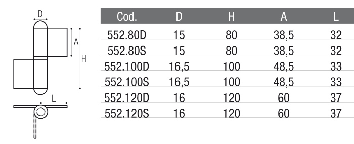 Look at the drawing below to see what the characteristics of the gate hinges are.