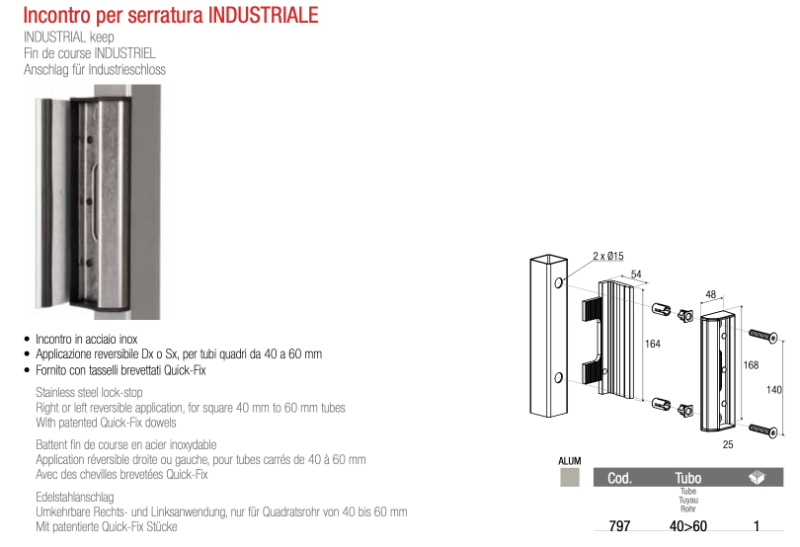 Strikers for industrial lock - code 797