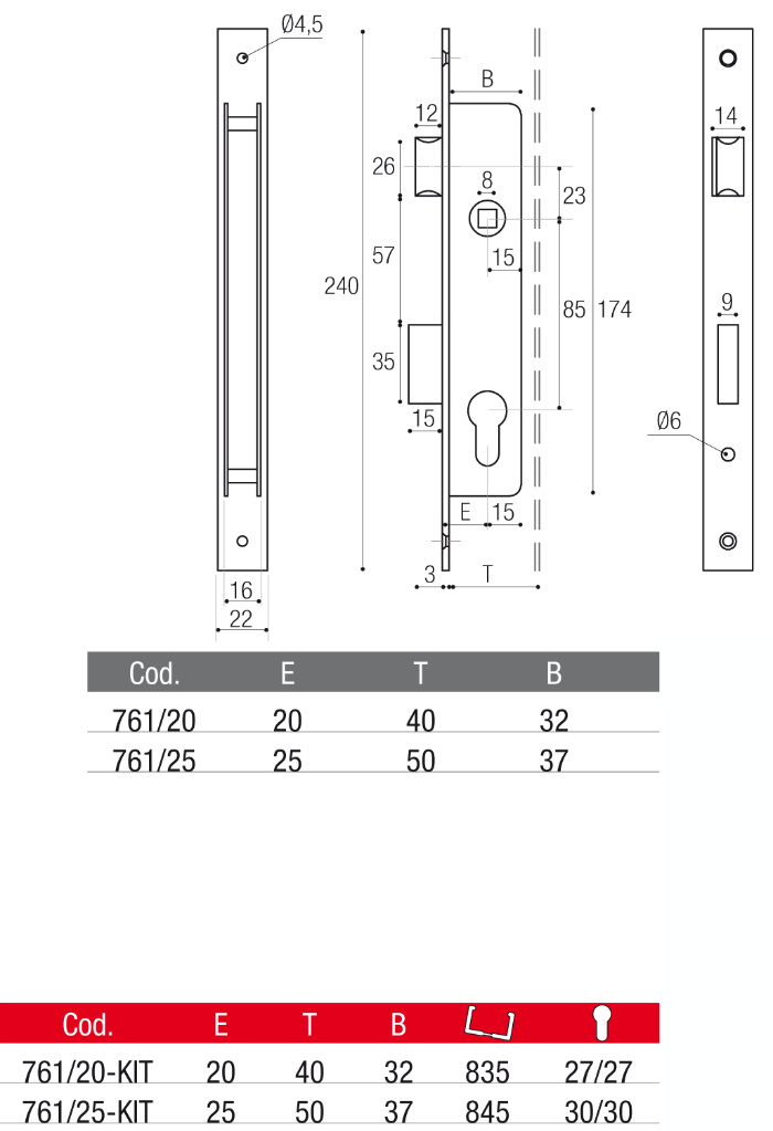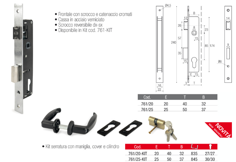 You can select the lock with sliding bolt in the lock-only version or in a kit with lock, handle, cover and cylinder.