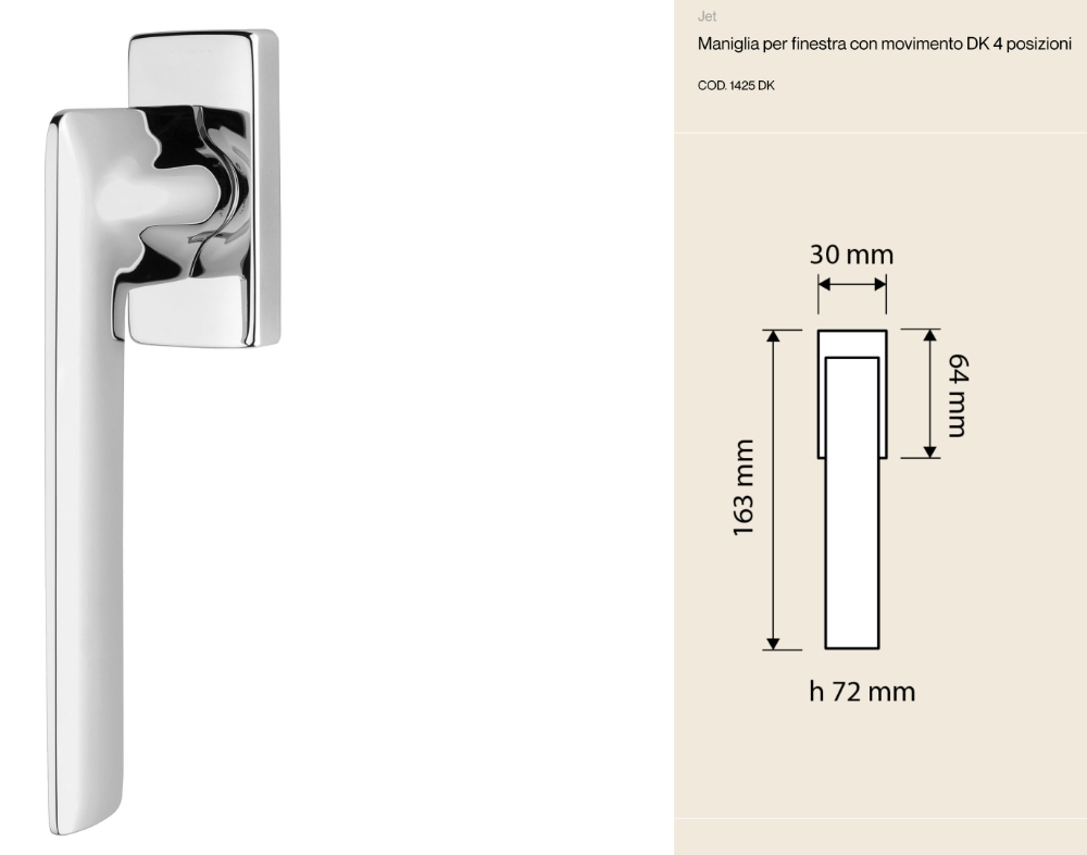 Jet Linea Calì Window Handle with Slim Grip and DK Movement