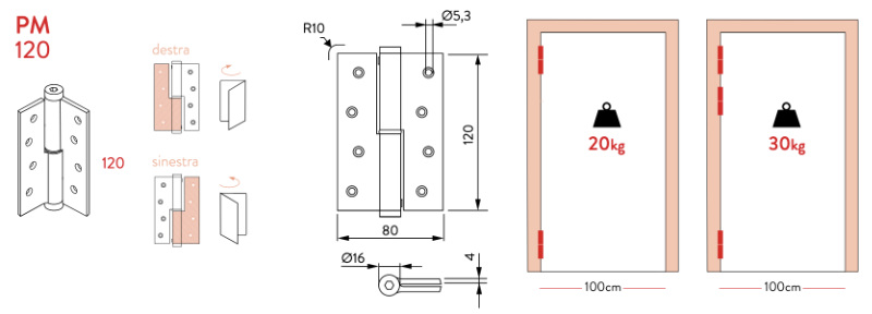Justor PM 120 pins differ in right or left opening (select the one you want).