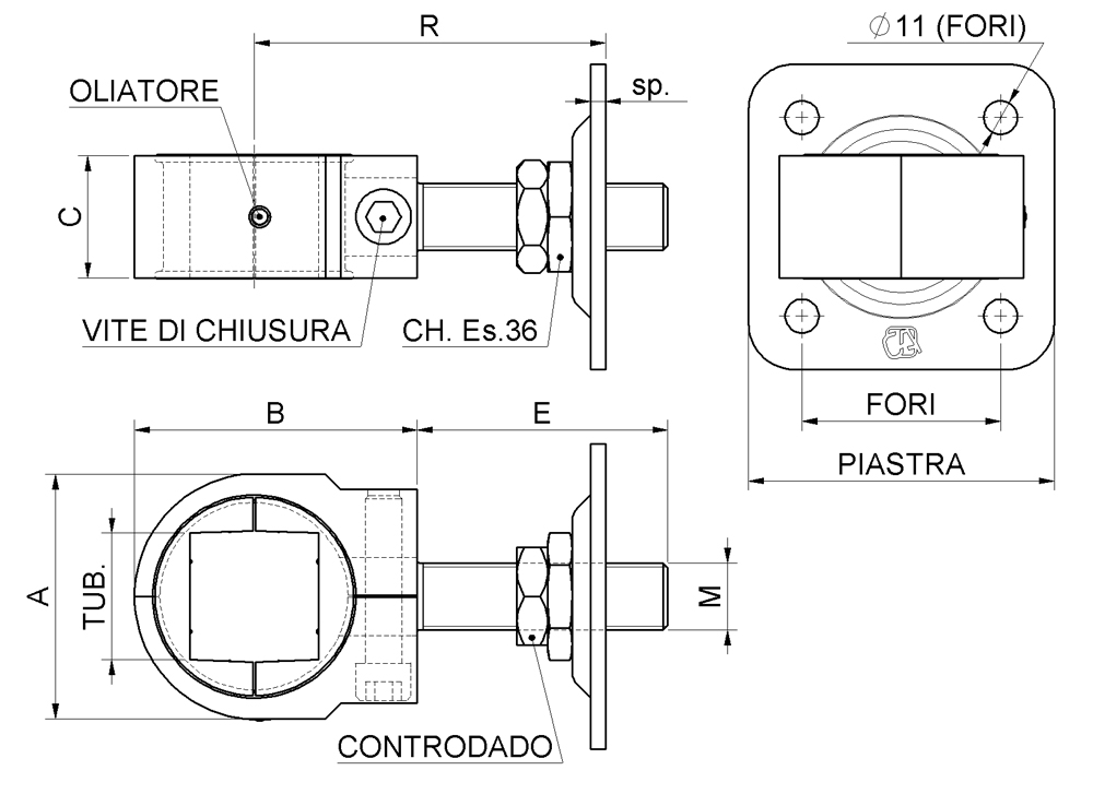 Cardine Matrix con Piastra e Controdado Cancello Battente Combiarialdo