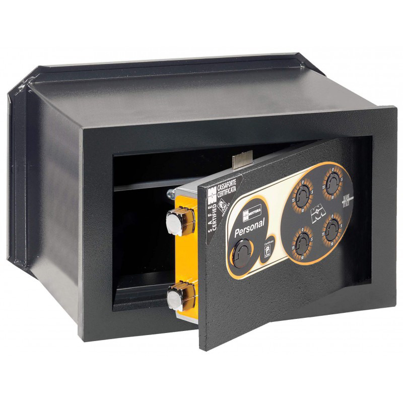 Mottura Personal mechanical wall safe equipped with a 4-knob mechanical combination lock.