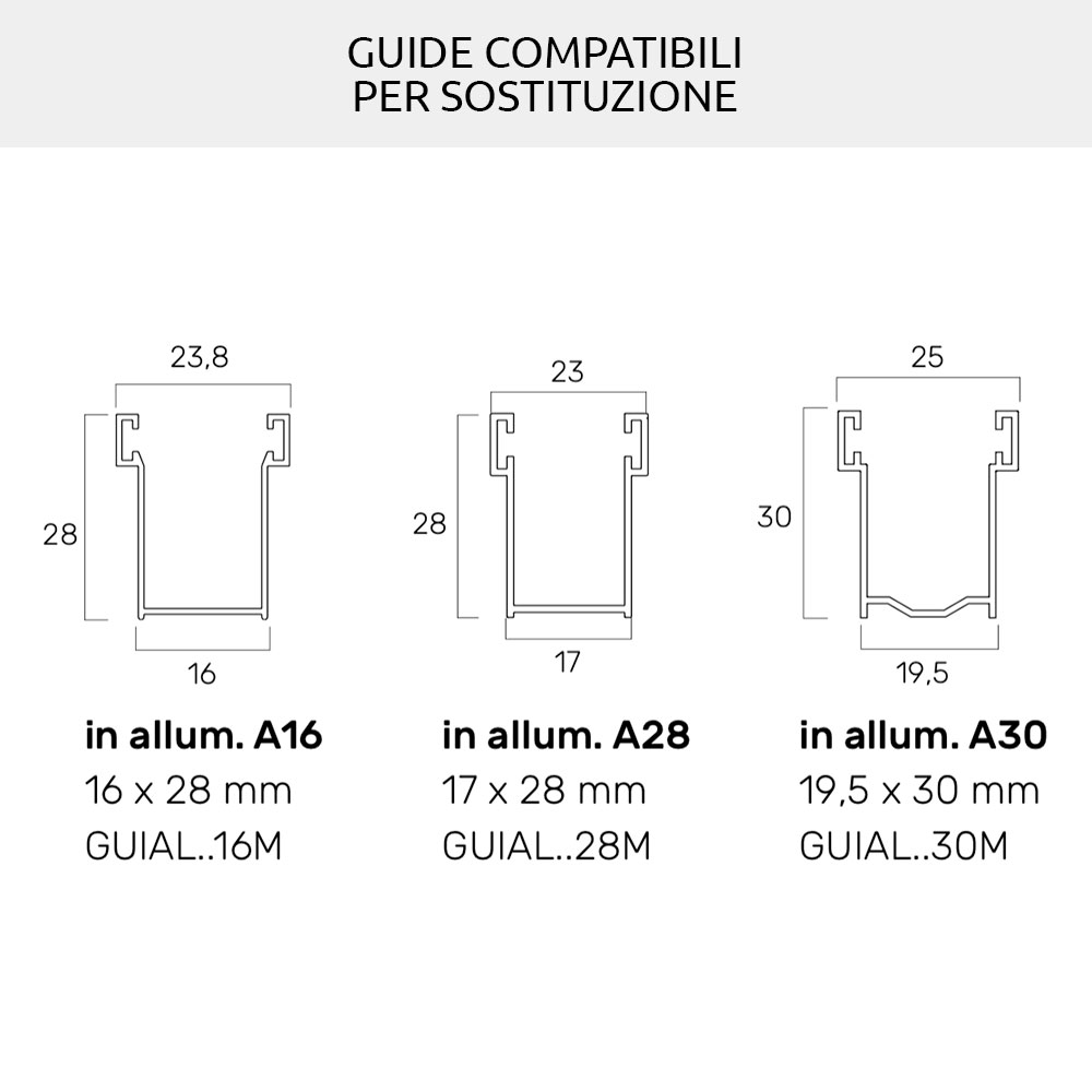 Replacement or new installation of roller shutters and sliding guides: for the width of the roller shutter, with reference to the guides to be used, the necessary tolerances must be taken. You can use the old guides if they are in good condition and if they have at least 16.5mm of usable space inside.