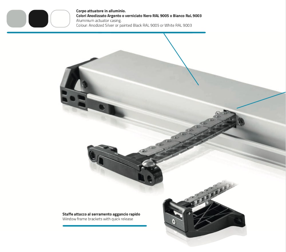 Micro Evo 1 Mingardi Double Link Chain Actuator for Top Hinged or Vasistas Windows