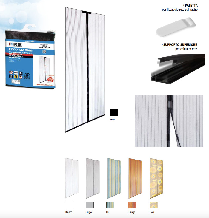 The Ecco Magnet magnetic mosquito net for French windows is made up of 2 panels of 70cm x 250cm which are unicoscono in the center through 10 magnets to cover dimensions up to 140cm x 250cm .