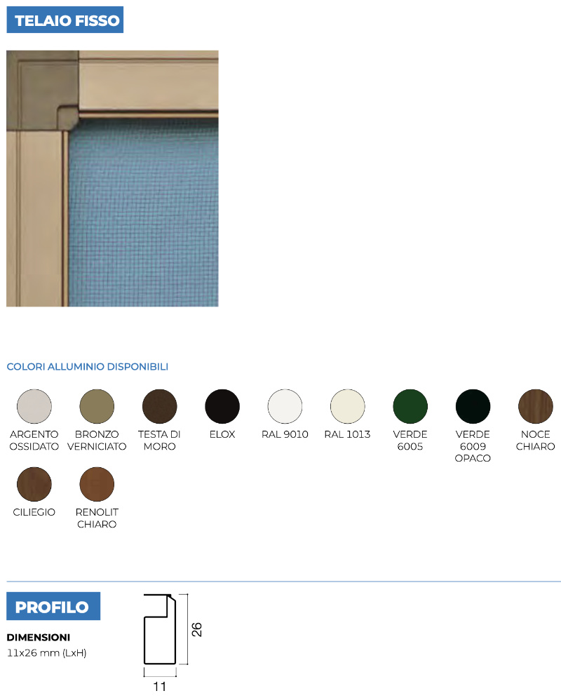 Fixed mosquito net characterized by the extremely small dimensions of the profile.