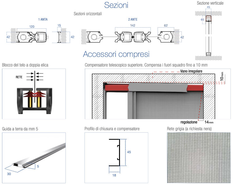 The NEMESI EASY FULL insect screen is the version of lateral insect screen with closed tank and without ground guide, elegant and characterized by the absence of architectural barriers.