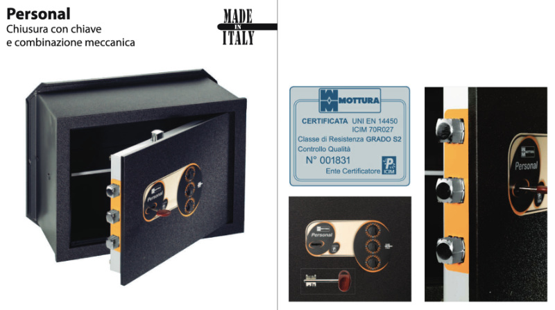 Mottura wall safe with key lock and mechanical combination Personal model. Door thickness 10 mm and frame thickness 12 mm.