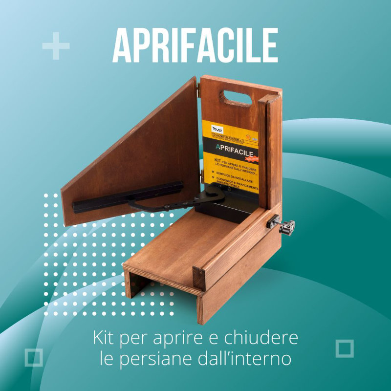 Aprifacile Tecnometalsystem is a modern device equipped with a clutch, which allows the shutters to be opened, closed and locked in any position from inside the home without having to open the internal window.