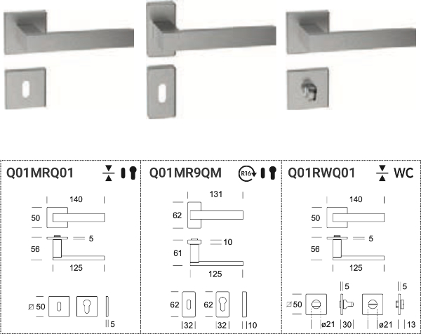 - Square slim rosette 50x50x5mm (if you are interested in the rectangular version contact us for a quote);