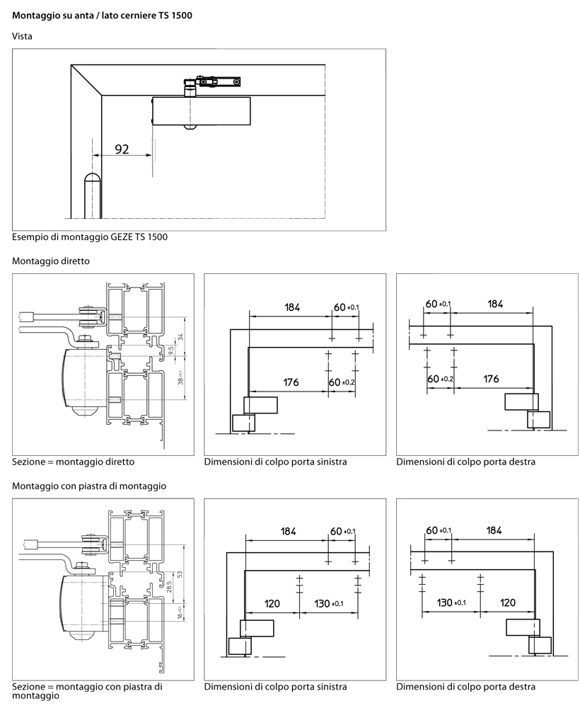 GEZE TS 1500 V with hold-arm with adjustable power, complete with hardware and installation template (mounting plate not included).