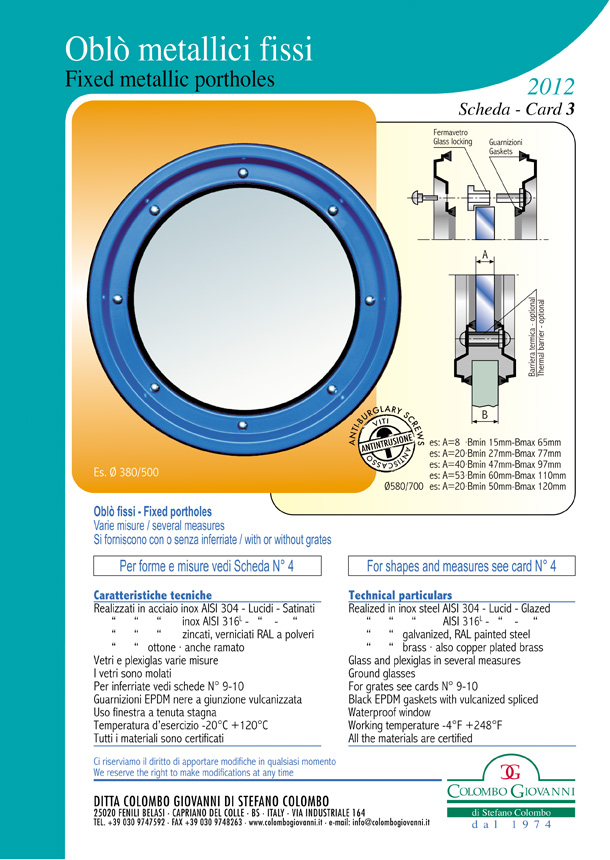 Porthole Fixed Metallic Inox Round Inox AISI 304 Colombo