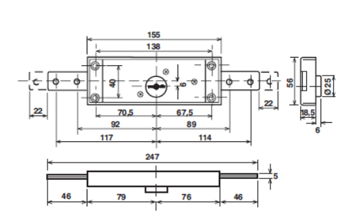 Potent 1630 lock dimensions: mm H56 xL155 / 247 / 281xP18.5.
