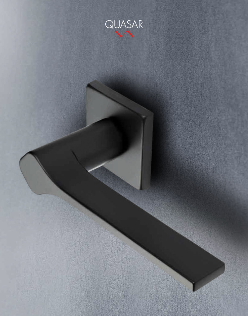 Made with high-quality materials and finished with extreme care, the Quasar handle stands out for its modern lines and square rosette, which adds a touch of geometry and style to the environment.