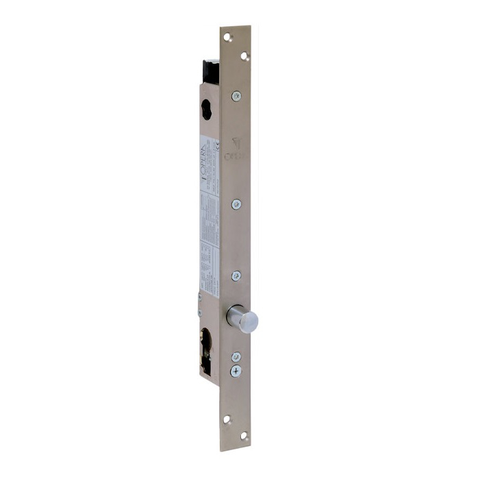 Opera 25800 safety solenoid lock is an advanced solution designed to guarantee the safety of single doors, keeping the deadbolt closed in the absence of power.