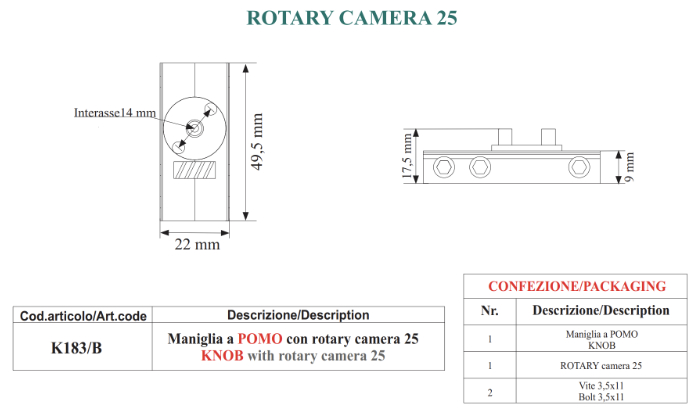 - K183 / B : EUROPA knob with rotary chamber 25;