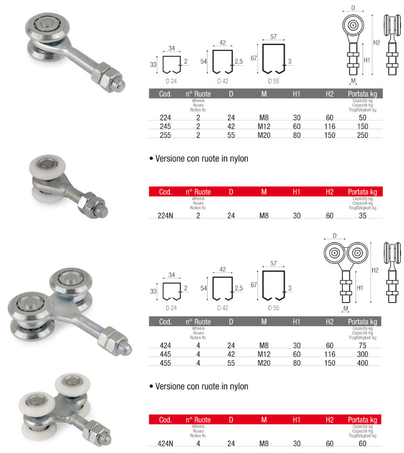 Trolleys for gates with different versions available in various sizes (select the variant).