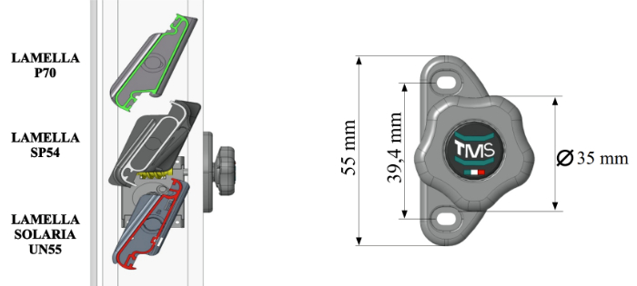 It can be mounted on all Tecnometalsystem adjustable shutter mechanisms.