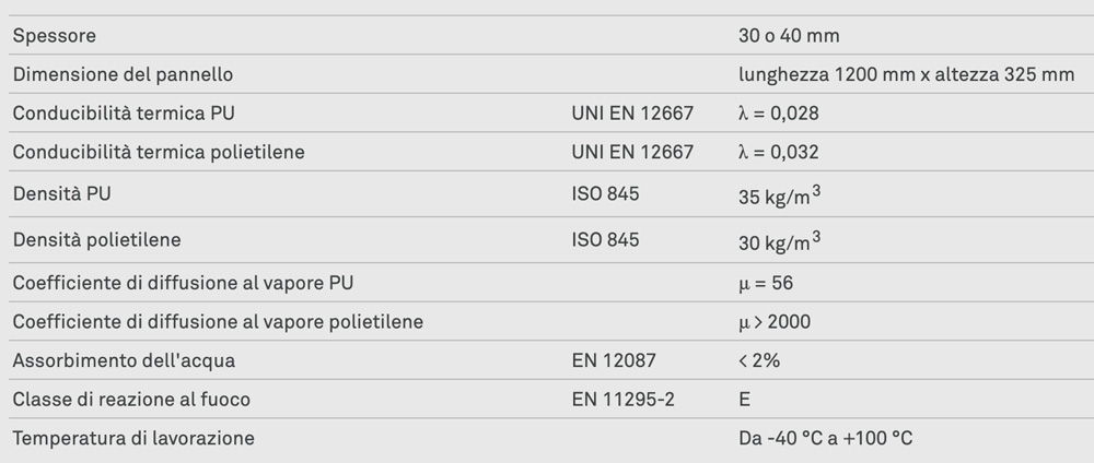 The coupled panel guarantees the maximum possible performance: the polyethylene part, in fact, in addition to the very high thermal insulation (λ = 0.032) thanks to the addition of graphite in the mixture, ensures better acoustic insulation thanks to the spring-mass-spring effect; the polyurethane panel, on the other hand, guarantees maximum performance in terms of thermal insulation (λ = 0.028). Thanks to this panel, CassoMuro achieves incredible performance for a renovation box: up to 41 dB of noise reduction (in conjunction with the Acu-Stop panel) and up to 1.0 W / m * K of Usb transmittance (thus falling within the limits set by the Ministerial Decree of 26 June 2015 for climatic conditions F starting from 01/01/2021) Available in two thicknesses: 30 or 40 mm, length 120 cm, width 32.5 cm, packaged in boxes of 10 pieces.