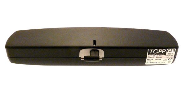 Topp electric actuator model C30 24V with double-link articulated chain, contained in a special casing, complete with support and accessories for top-hung or bottom-hung opening.