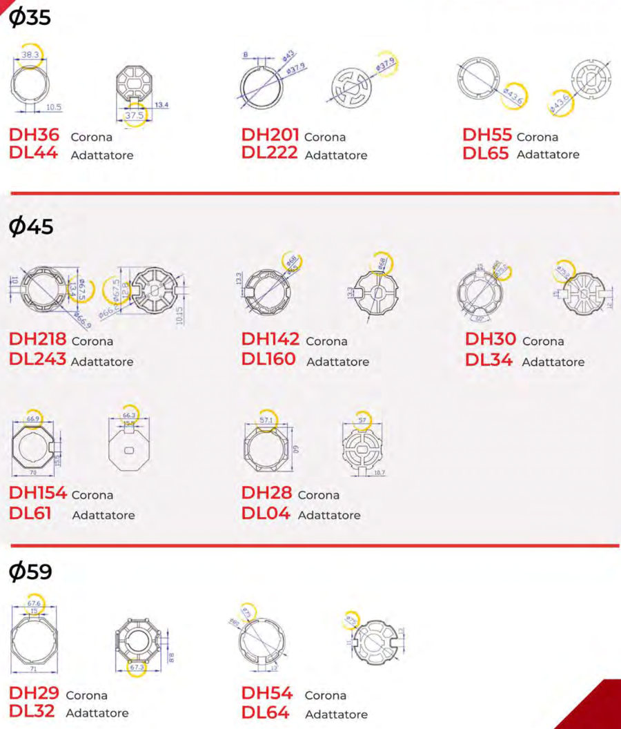 • Ø45 : Models DH218/DL243, DH142/DL160, DH154/DL61, DH28/DL04, DH30/DL34.